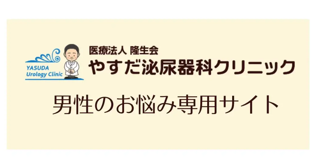 大阪府門真市の やすだ泌尿器科クリニック【男性のお悩み専門サイト】をご覧いただきありがとうございます。このサイトは男性から多くご相談をいただく、性感染症、ED治療、AGA治療、包茎のお悩みなど、主に自費診療を中心に解説しているサイトになります。その他の保険診療を中心とした泌尿器科疾患については公式サイトで詳細に説明していますのでそちらをご覧ください。また、皆様のメンズライフが充実したものとなるよう、院長通信ブログも定期的に更新しておりますので、お読みいただけると幸いです。